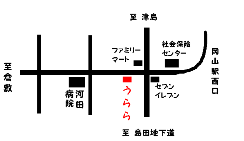 電車:JR岡山駅岡山駅西口より徒歩10分