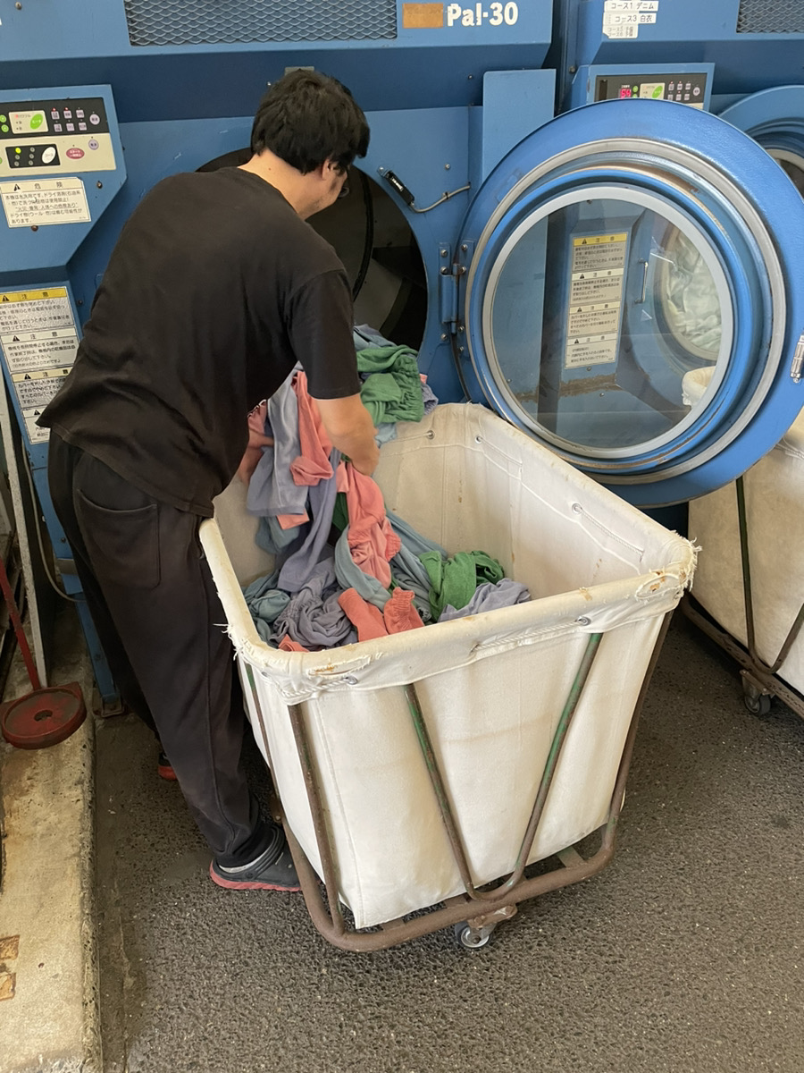 クリーニング作業(洗い、たたみ、梱包、仕分け作業)