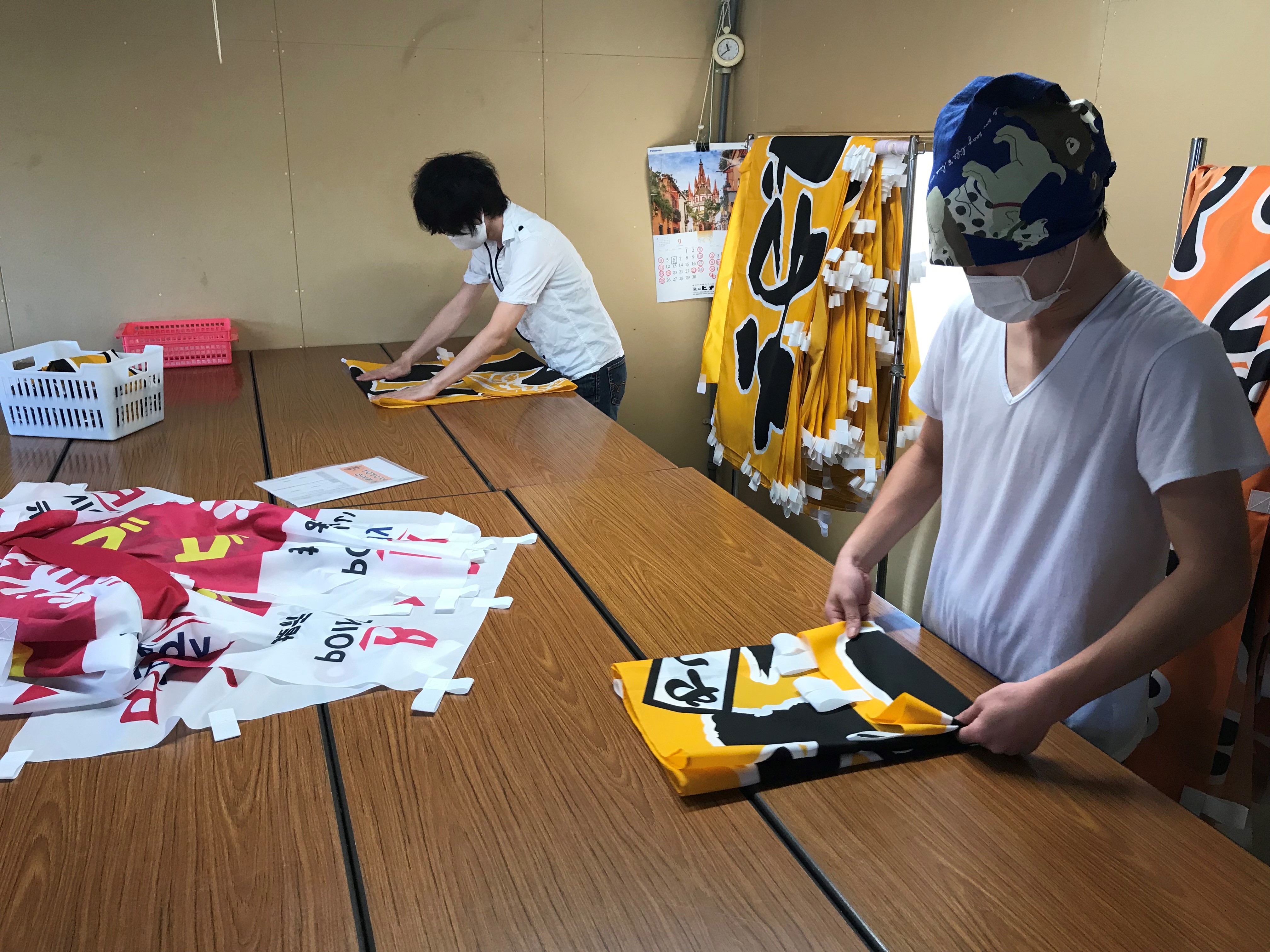 1.のぼり旗たたみ・梱包作業